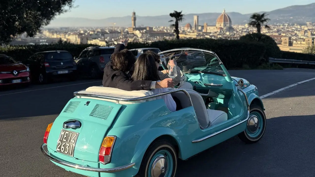For those who want to truly capture the essence of Florence, this two-hour Golden hour tour offers the perfect mix of the city's iconic landmarks and its stunning natural surroundings. Aboard our signature vintage electric Fiat 500s, you’ll ride through the city’s enchanting streets and then climb into the hills for a breathtaking view of the Renaissance capital.