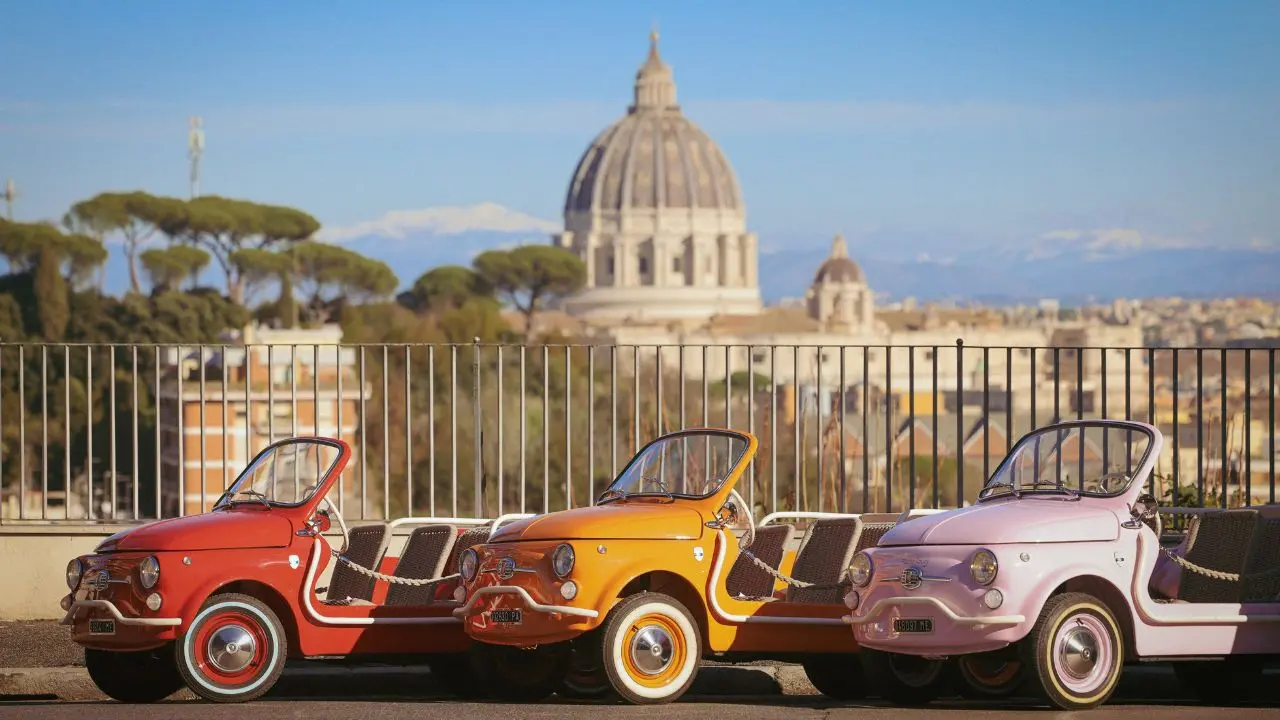 Ride through the Eternal City in a vintage electric eFiat 500, an icon of Italian style and timeless charm. As you move through Rome’s historic streets, you’ll take in famous landmarks such as Piazza Venezia, the Roman Forum, and the Colosseum (from the outside), before heading toward Circus Maximus and the scenic Orange Garden.