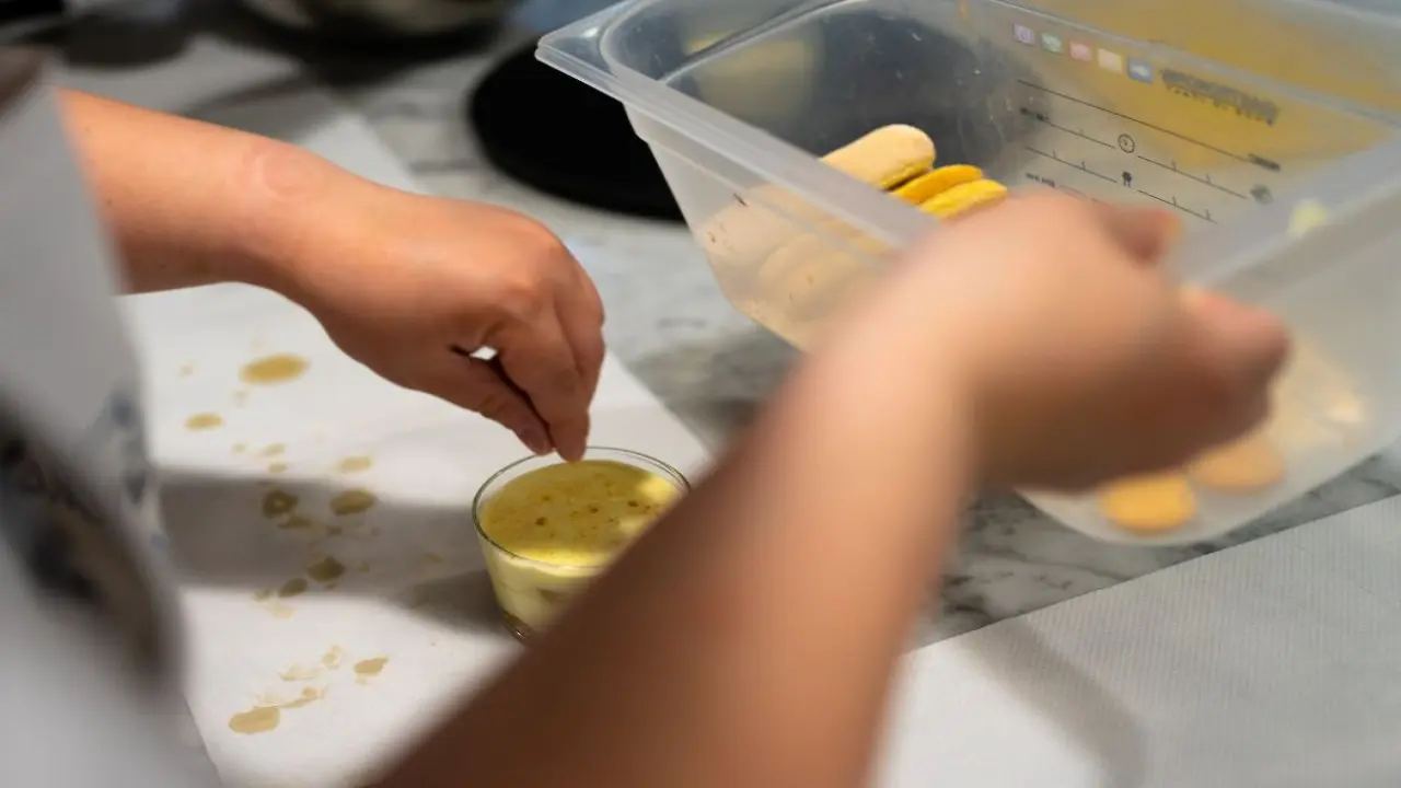 Once your coffee skills are in place, it’s time to get hands-on with Tiramisù, the most famous Italian dessert. Step by step, you’ll whip a smooth mascarpone cream, soak ladyfingers in fragrant moka coffee, and build perfect layers that balance sweetness and texture. A final sprinkle of cocoa finishes your dessert with an elegant touch. Throughout the process, your Chef shares practical tips, techniques, and insider secrets so you’ll feel confident recreating Tiramisù in your own kitchen.